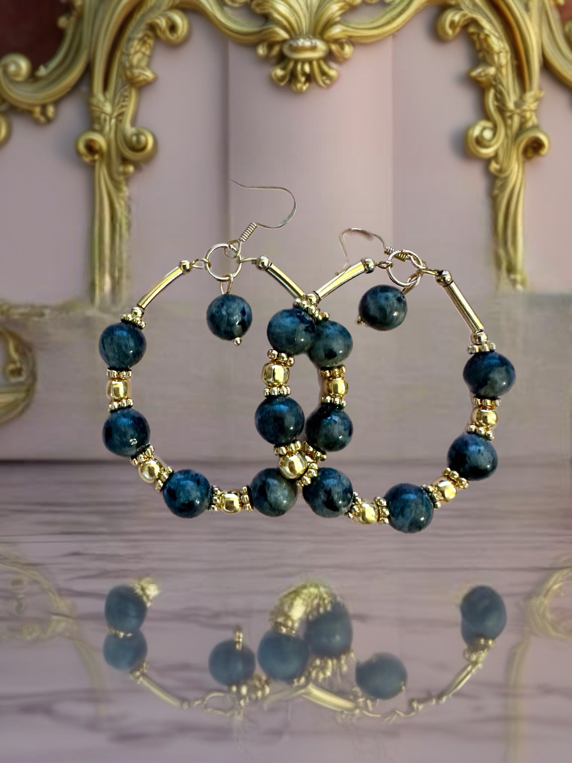 Add a touch of timeless elegance to your ensemble with our Celestial Grace Hoops. Handcrafted with precision, these stunning earrings feature smooth Howlite stones—known for their calming energy—delicately accented by radiant 14k gold-plated wire and beadwork. The harmonious combination of marbled Black/Grey and gold creates a celestial aesthetic that’s both earthy and refined. Lightweight yet striking, these hoops are perfect for elevating everyday looks or adding a graceful statement to evening attire.