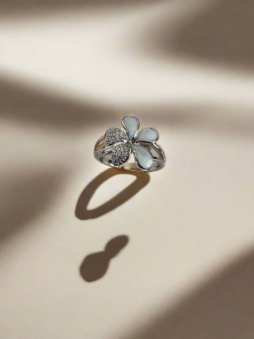Silver-Plated Floral Ring with Cubic Zirconia & Enamel Petals