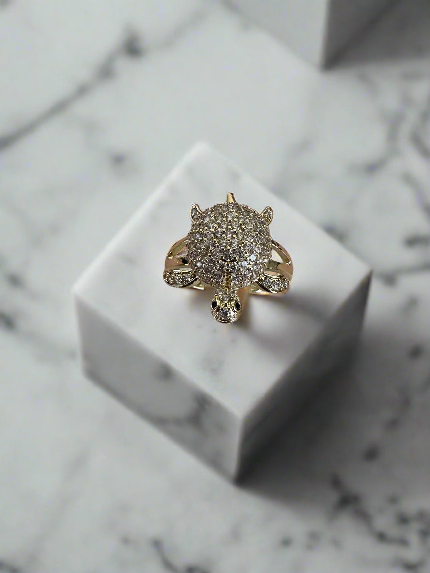 14K Gold-Plated Turtle Ring with Cubic Zirconia